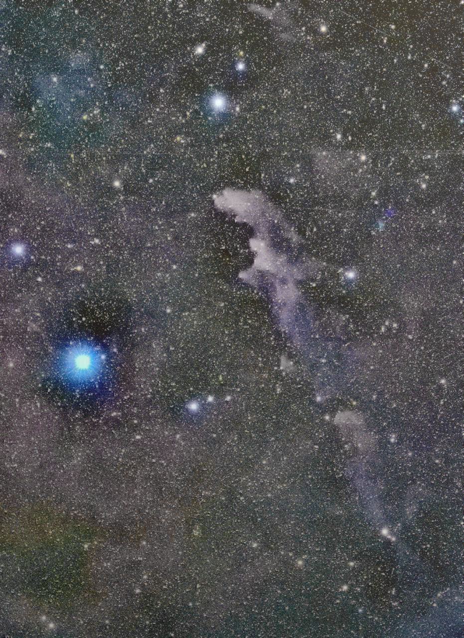 | 魔女の横顔(IC2118) 日時:2021.12.04 露出5分X8 ISO:3200 カメラ:Nikon D810A レンズ:シグマ60-600スポーツ@200mm F5.6 架台:SXP2+PHD2自動ガイド 撮影:石黒 場所:長野県野辺山 |