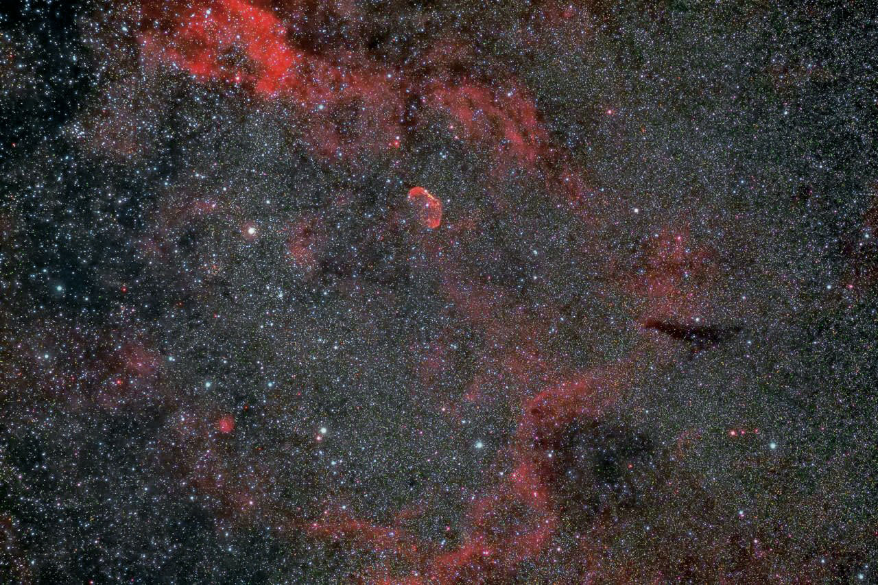 | IC2177(「わし星雲」または「かもめ星雲」) 日時:2022.02.04 露出5分X5、3分X4、150秒X5 ISO:3200 カメラ:Nikon D810A 望遠鏡:AskarFMA230(D:50㎜、f:230㎜) 架台:SXP2+PHD2自動ガイド 撮影:石黒 場所:群馬県下仁田 備考:SI9で合成。PSで修整。 ミラーBOXのケラレ分トリミング |