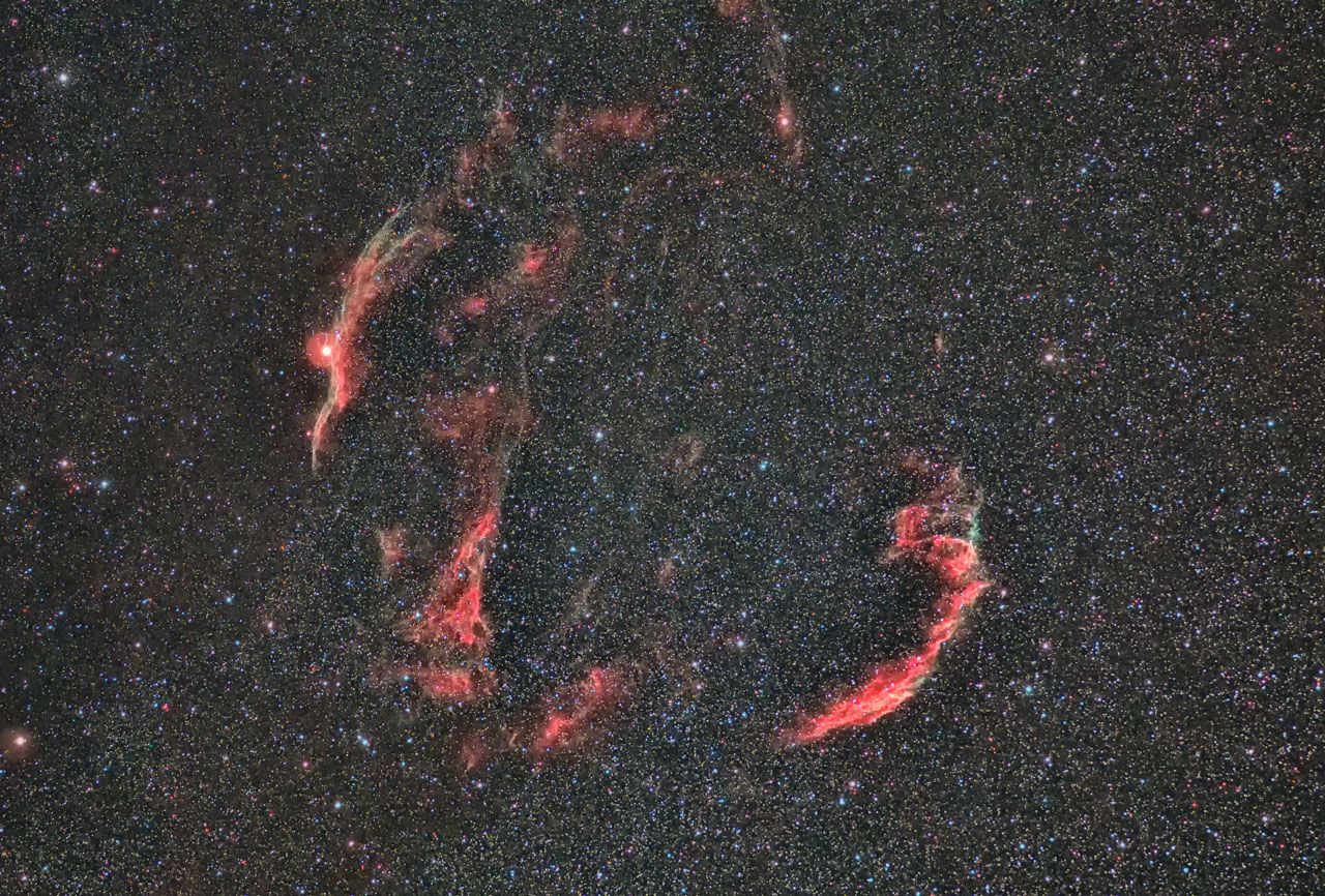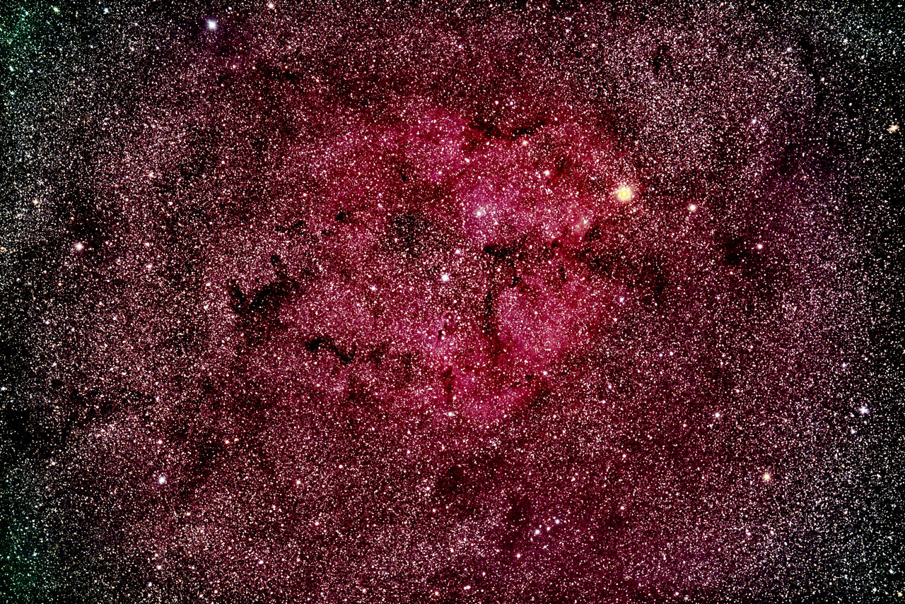 | ガーネットスター&IC1396 日時:2021.11.7 露出5分x10枚 ISO:3200 カメラ:Nikon D810A レンズ:SIGMA60~600ズームを300㎜、F5.6で使用 架台:SXP2+PHD2自動ガイド 撮影:石黒 場所:長野県原村 |
