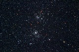 | 二重星団 (NGC884(左);χ(カイ)、 NGC869(右))h(エイチ)) 年月日:2017年11月20日 5分露出 ISO:1600 カメラ:CanonEOSX5 望遠鏡:Vixen-ED81S鏡筒(f=625㎜)直焦 架台:VixenSXP(PHD2自動ガイド) 撮影:横倉 場所:長野県佐久市臼田 備考:錫箔による回折光防止 のため口径76㎜に絞る |