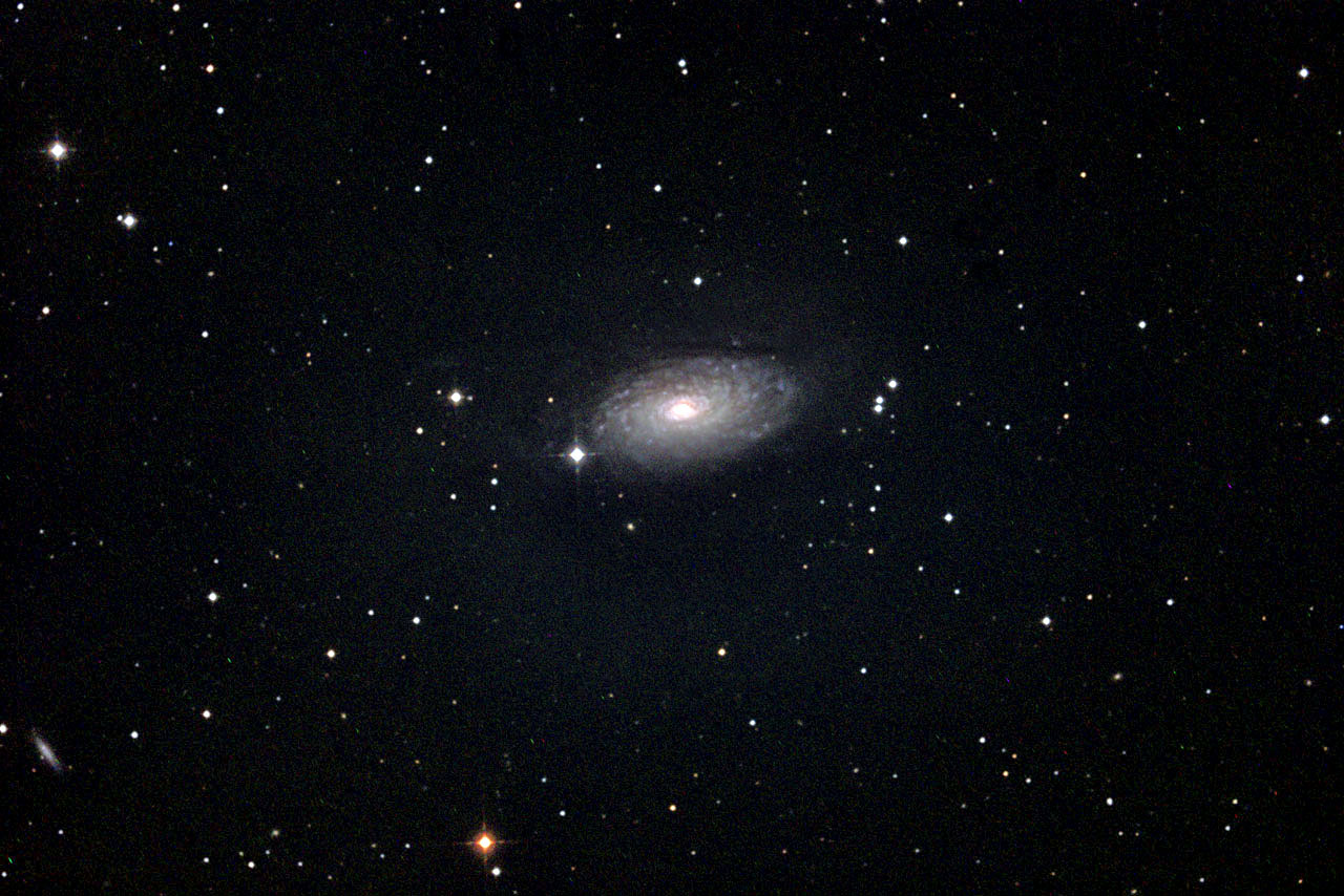 | M63(ひまわり銀河) 日時:2021.05.9 22:14 露出5分x9枚 ISO:1600 カメラ:Nikon D5300HKIR改造 望遠鏡:VC-200L(D=20cm,f=1800mm)直焦点 架台:SXP2+PHD2自動ガイド 撮影:石黒 場所:群馬県下仁田 |
