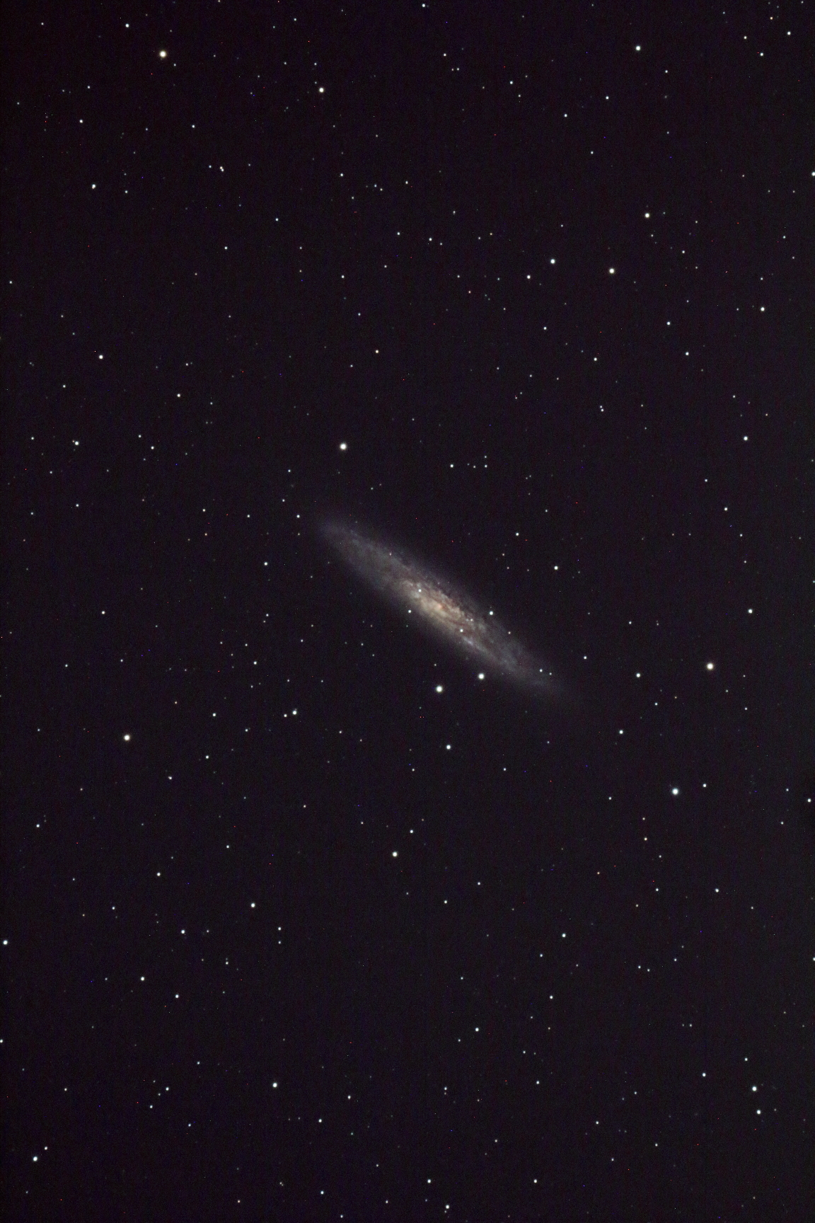 | NGC4565(Needle Galaxy(かみのけ座)) 日時:2021.04.10 露出600秒x3枚 ISO:1600 カメラ:Nikon D5300HKIR改造 望遠鏡:VC-200L鏡筒直焦点 架台:SXP2+PHD2自動ガイド 撮影:石黒 場所:群馬県下仁田 |