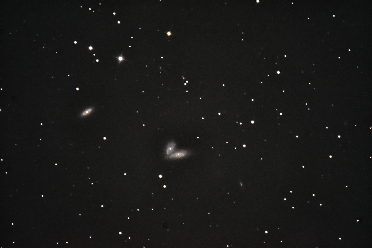 | NGC4567&4568 おとめ座の衝突銀河 日時:2020.03.21~22 露出5分x3枚 ISO:1000 カメラ:Nikon D5300 望遠鏡:VC-200L 架台:SXP2+PHD2自動ガイド 撮影:石黒 場所:朝霧高原 |